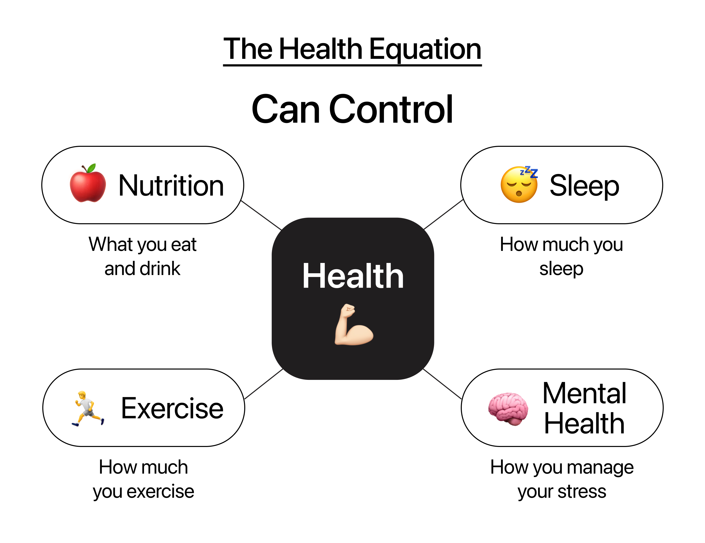 Health = Nutrition + Sleep + Exercise + Mental Wellness